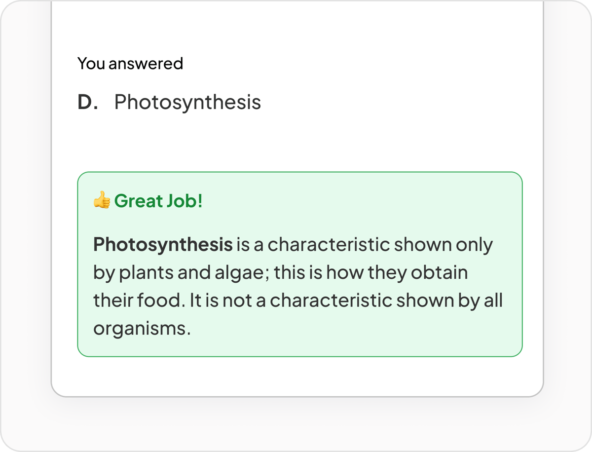 Check your answers with our Smart Mark AI or mark schemes. Then get a clear breakdown of what you’re doing well and what to work on before the real exam.